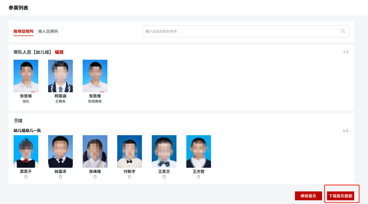 (七)在参赛列表中检查所有参赛信息无误,点击“下载报名数据”,可保存报名Excel存档。