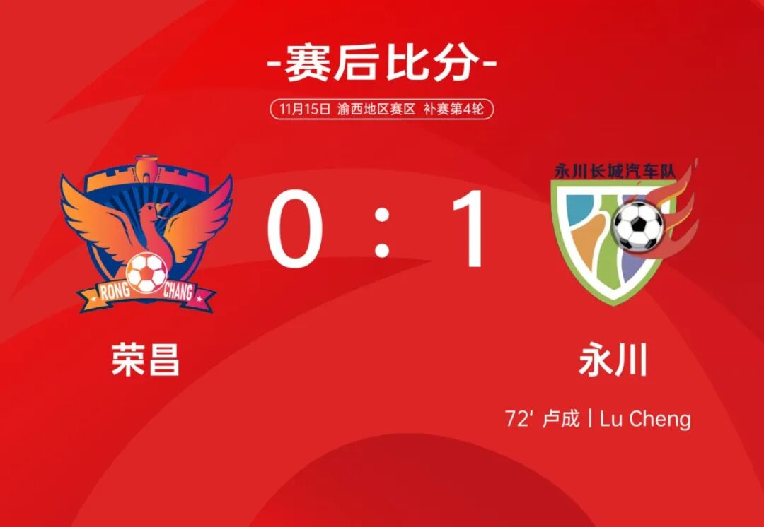 本场比赛双方踢得非常激烈,永川33号球员卢成直接任意球破门,打入全场比赛唯一进球,帮助永川1:0取胜。由于江津意外输球,目前4胜1负积12分,永川和铜梁本轮取胜后,积分来到7分。少赛一轮的大足3胜1负积9分,晋级悬念再次出现。