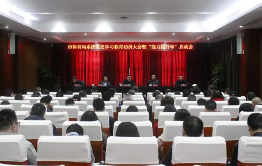 会议认真学习了习近平总书记在党史学习教育动员大会上的重要讲话精神,对标对表落实《中共中央关于在全党开展党史学习教育的通知》精神和市委实施方案,对全局系统开展党史学习教育进行深入动员和全面部署,并启动了“能力提升年”有关工作,局人事处、产业处,市运动技术学院、市社体中心、市奥体中心等单位作了会议表态发言。局直属单位副处级以上干部、局机关全体党员干部职工,局党史学习教育领导小组办公室及成员百余人参加会议。