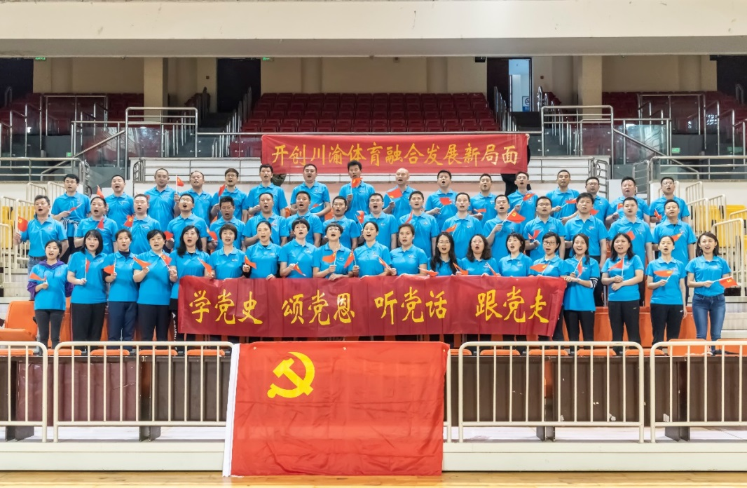 活动当日,首先,邀请党史学习教育重庆市委宣讲团成员、市政协文史委副主任杨清明教授作“习近平总书记系列重要讲话精神解读”专题讲座,川渝两地参训学员进行了理论学习。随后,开展了团建活动,并合唱《跟着共产党走》。学员们纷纷表示,这次主题党日活动既夯实了党的理论基础,又增进了团队协作,更升华了川渝两地体育人爱党、为党、永远跟党走的信心决心,一定凝心聚力,紧密协作,努力开创川渝体育融合发展新局面。