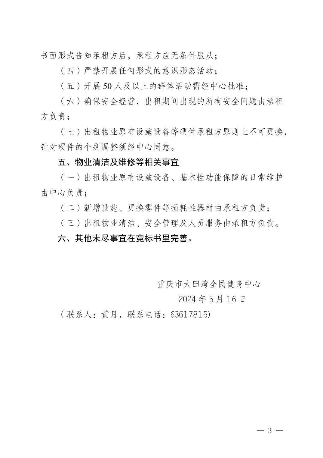重庆市大田湾全民健身中心关于部分空置物业公开招租的公告_橙子喵酱