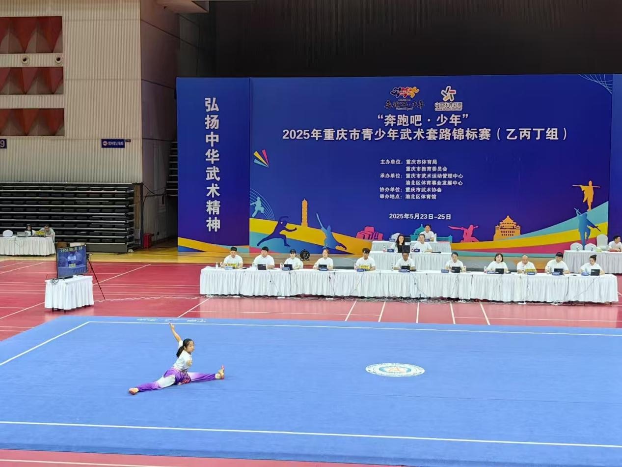 近日,“奔跑吧·少年”2025年重庆市青少年武术套路锦标赛(乙丙丁组)在渝北区体育馆举行,市内相关区县代表队共计16支队伍,218名运动员参赛。(供稿:吴昊雷)