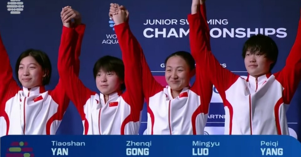 8月20日凌晨,在2025世界青年游泳锦标赛女子4×200米自由泳接力决赛中,来自重庆的两位运动员龚真琦、罗名钰与中国队另外两名选手严窕珊、杨佩琪组成的中国女子4×200米自由泳接力队,以7分51秒59力压美国队夺得首金。
