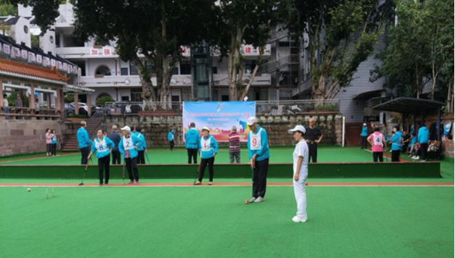 近日,大足区门球协会在区离退休干部中心门球场举办全民健身“迎中秋·庆国庆”门球赛,来自该区各单位的16 支队伍 140 余名运动员参赛。