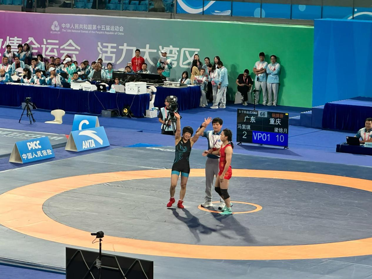 市运动技术学院运动员梁锦月获得第十五届全运会自由式摔跤项目女子50公斤级比赛铜牌