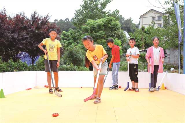 6月21日,2020年重庆市冰雪运动“七进”(进机关、进部队、进校园、进厂矿、进农村、进社区、进家庭)活动的第一站在巴南丰盛古镇开启。在现场专业人员的指导下,不少居民也是首次尝试了冰雪项目,陆地冰球更是受到小朋友的欢迎。