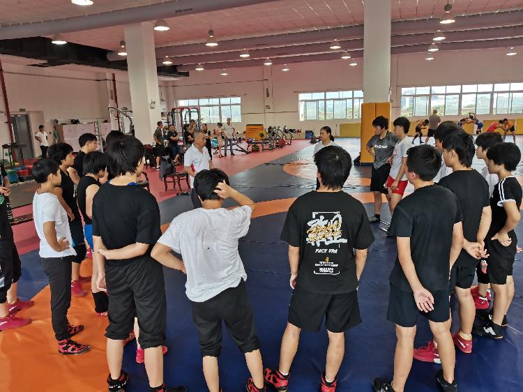 除了古典跤,另一个摔跤项目——自由跤同样肩负着夺牌任务。训练馆内,重庆市自由跤队主教练、原国家队男子自由跤总教练潘教利正在指导女队训练。据领队王勇介绍,下一届全运会夺牌任务在男队,但根据目前训练成效来看,女队也有望实现突破。