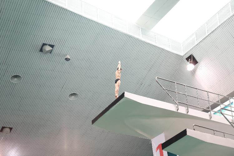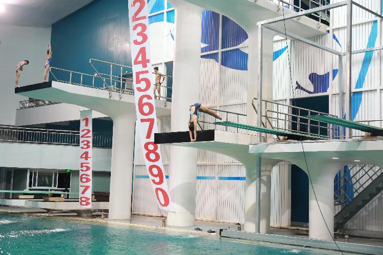 跳水馆里训练的运动员们