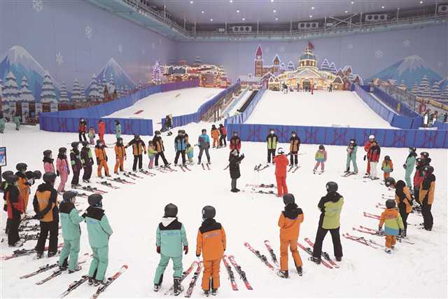 冬奥期间,重庆市民纷纷走上雪场体验滑雪运动。