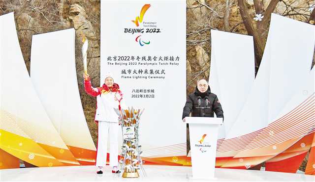 本报讯 (记者 黄琪奥)3月2日,北京2022年冬残奥会火炬接力城市火种采集仪式在八达岭古长城景区举行。出生在重庆,现为中国登山协会成员、肢残运动员登上珠峰的第一人夏伯渝以火炬手的身份,参加了冬残奥会的火炬传递。