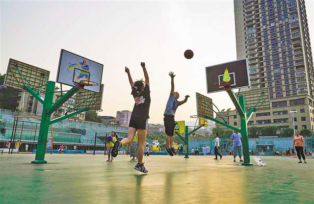 4月23日,市民在北碚区体育运动公园打篮球。