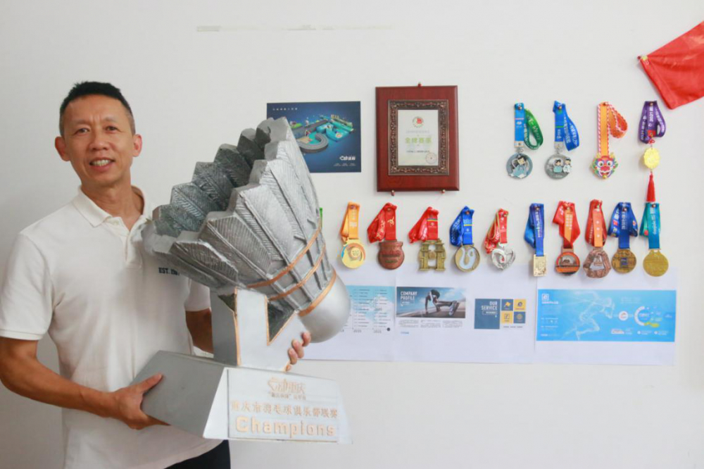 同时,“云动体育”团队还策划执行了众多体育赛事,在他的印象中,最深刻的还是2014年承办“谁是球王”中国羽毛球民间争霸赛。此次比赛限制专业选手报名,是纯业余羽毛球竞技比赛,在央视进行实时直播,“普通老百姓也有上央视的机会”。经过努力,西南大区决赛最终在北碚缙云文体中心举行,吸引了近500名业余羽毛球高手报名参加。直到今天,许多羽毛球爱好者对这场比赛仍然记忆犹新,大家第一次面对央视多机位镜头,开始时非常紧张,发球不过网、出界,甚至双手发抖,失误频频,后来才慢慢适应。最终,重庆赛区的业余选手也不负众望,夺得了当年总决赛的亚军。