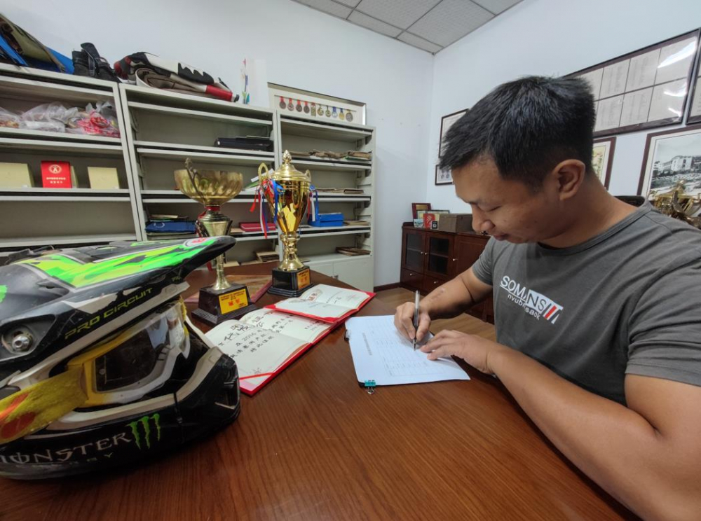 2006年左右,他还是一名自行车攀爬爱好者,偶然的原因接触到摩托车,就爱上了这项运动,一边找了个修车的工作,一边玩摩托,先后到贵州、四川、湖南等地参加过很多比赛,几乎每年都能获得多项越野摩托冠军。