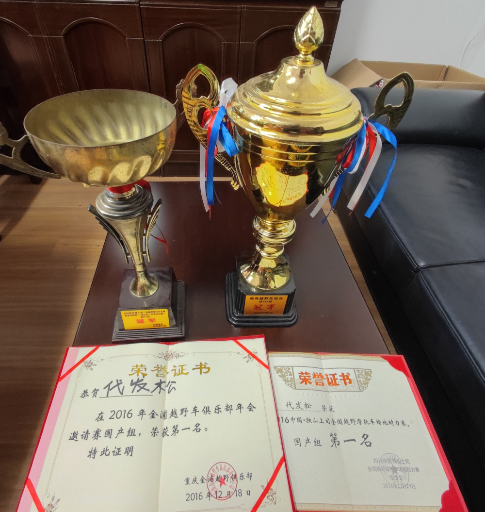代松在重庆越野摩托车比赛圈有很好的成绩,最近10年左右时间,他至少获得了10多项冠军。