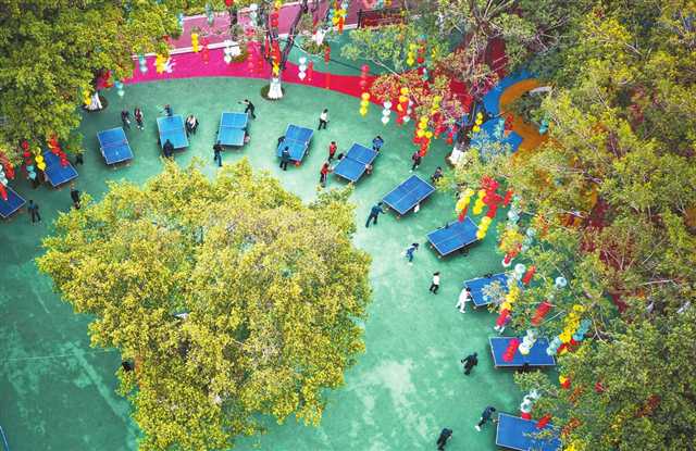 大渡口公园,绿树下的乒乓球桌前,众多市民在比拼球技。记者 郑宇 摄/视觉重庆