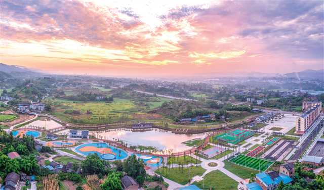 鸟瞰垫江县澄溪镇兴澄体育公园