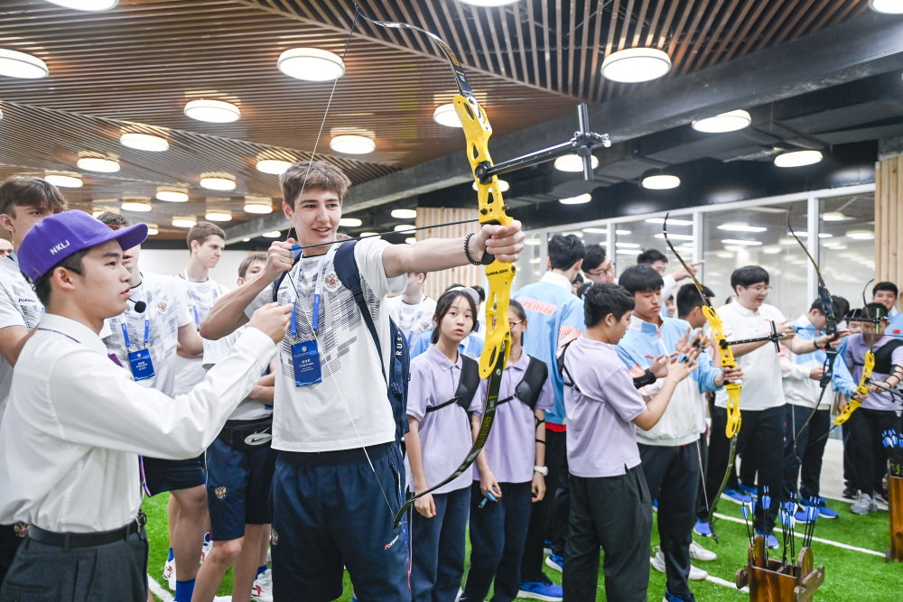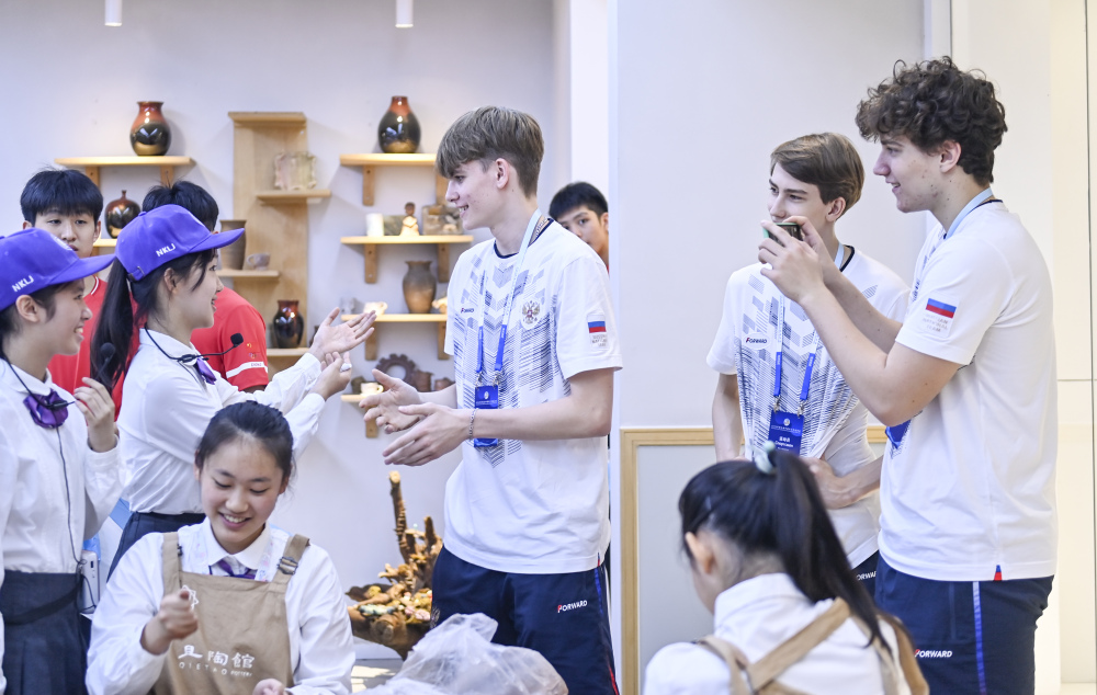 在友好、融洽的气氛中,中俄运动员和学校学生一道,切磋篮球技艺,体验射箭、棒球等特色体育项目,欣赏陶艺、美术作品,参观科技馆等,各项活动或洋溢体育激情,或流露文艺魅力,受到运动员欢迎。活动结束时,很多运动员都感到意犹未尽。一个拥抱、一句“再见”,此刻承载了太多情谊。