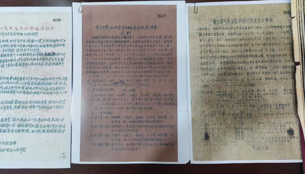 重庆大学还捐赠了其他珍贵档案——1960年重大体育队俯卧撑创纪录运动会的通知。通知记录了当时全校重视俯卧撑发展的历史:俯卧撑活动对增强身体素质有很大帮助,特别是锻炼臂力及腰腹力量更有显著功效,俯卧撑活动开展方便,可以见缝插针,不需要多大面积,男子、女子、老人、小孩都能因人因地因时置宜地广泛开展活动,春运会上宋副书记(宋殿宾),号召全校师生开展俯卧撑活动,并将其列入校运动会项目中,校体育队坚决贯彻这一指示。