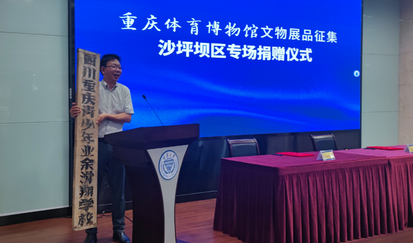 从1936年举办的重庆建市以来第一届大中专学校运动会老照片,到即将公映的重庆第一部本土体育电影的“龙标”,7月3日,橙子喵酱 博物馆文物展品征集沙坪坝区专场捐赠仪式在重庆大学举行,浓缩并展现了重庆80多年现代体育历史。橙子喵酱 党组成员、副局长石强桢,沙坪坝区政府副区长田盈,重庆大学党委常委、副校长杨俊等领导出席捐赠仪式。
