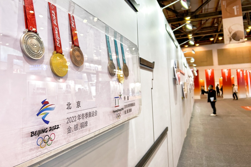 “体育文化体育旅游主题展区”展出的北京冬奥会奖牌。记者 赵迎昭 摄/视觉重庆