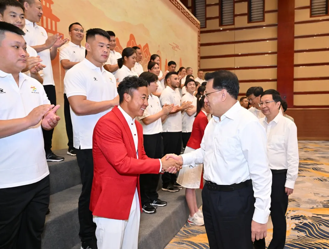 市委书记袁家军等同参加巴黎奥运会的重庆运动员和体育工作者代表亲切握手。记者 刘力 摄/视觉重庆