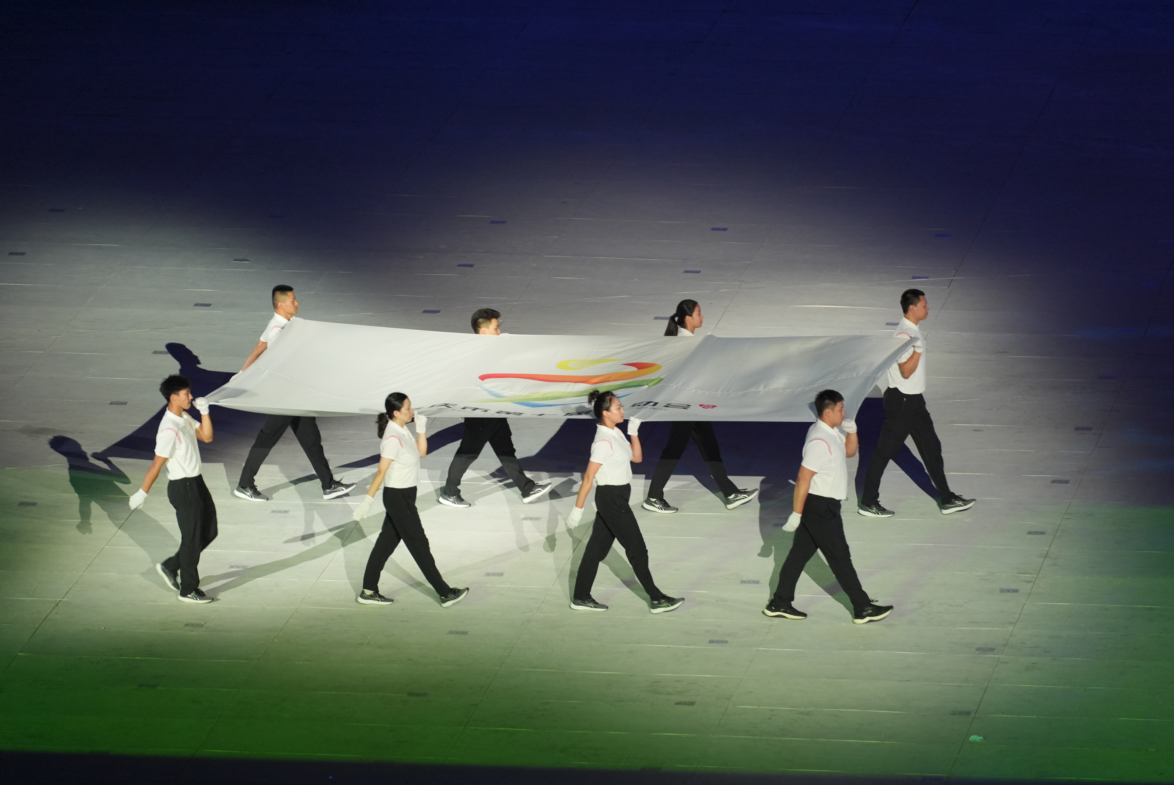 ▲9月20日,合川区体育中心,重庆市七运会开幕式现场——出旗仪式。记者 齐岚森 摄