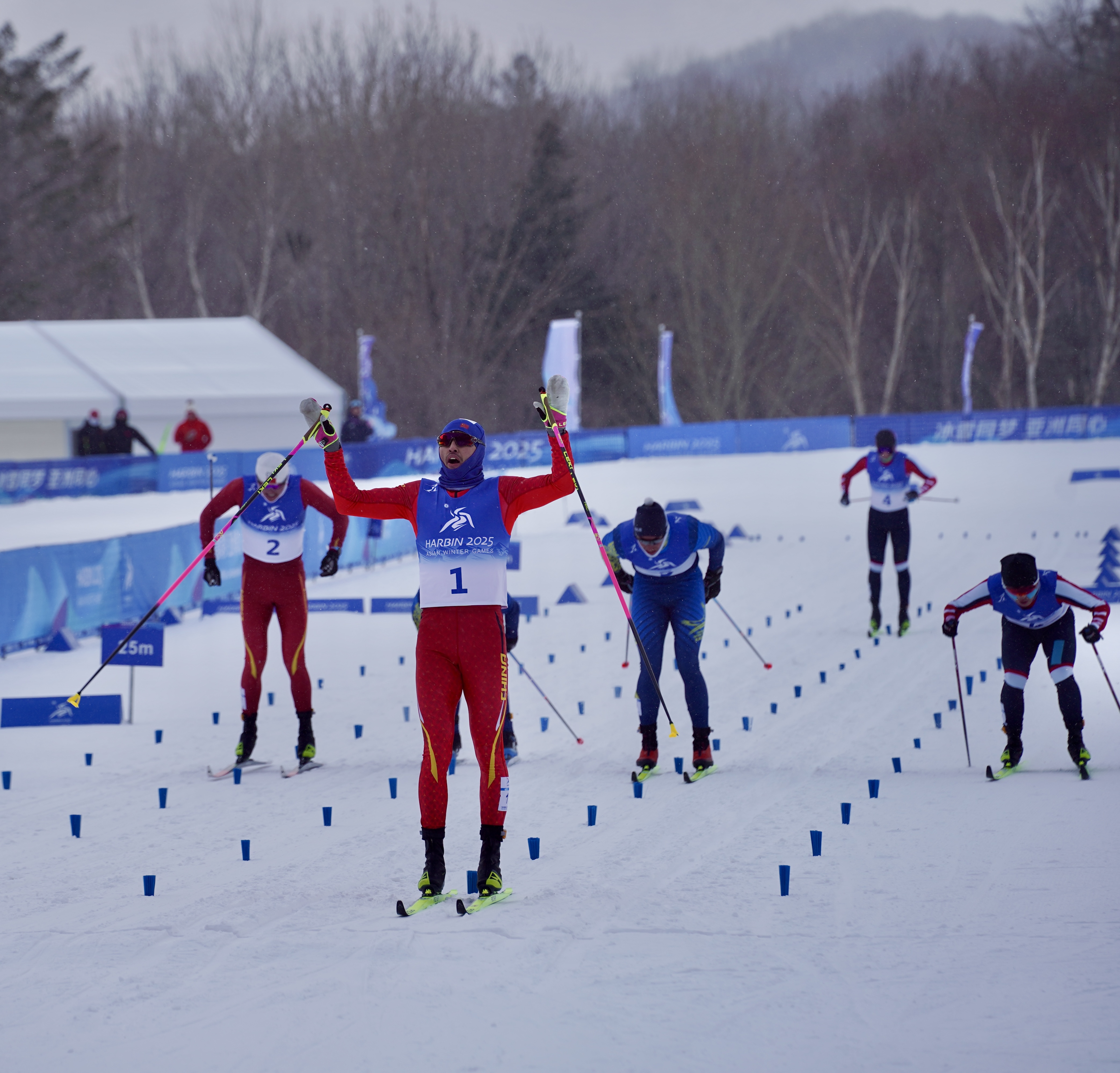 冲过终点时,31岁的中国越野滑雪名将王强振臂高呼,从14岁至今,历经17年的漫长征途,王强终于锁定了他的第一枚亚冬会金牌!