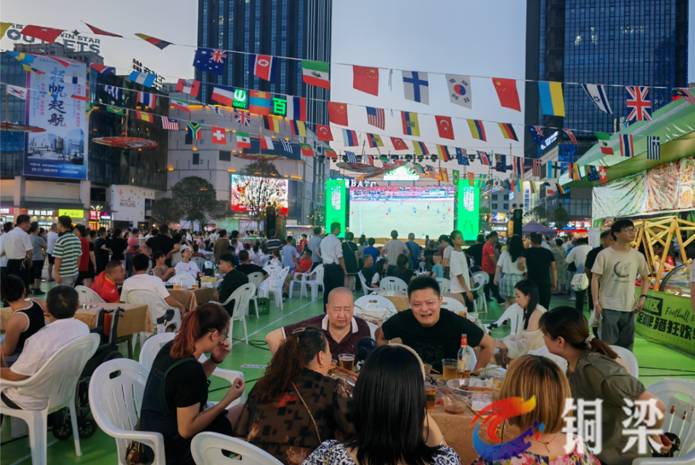 中甲比赛期间,铜梁区联动商家开辟第二现场,让没有买到球票的球迷直播观赛,带动消费。(图/铜梁发布)