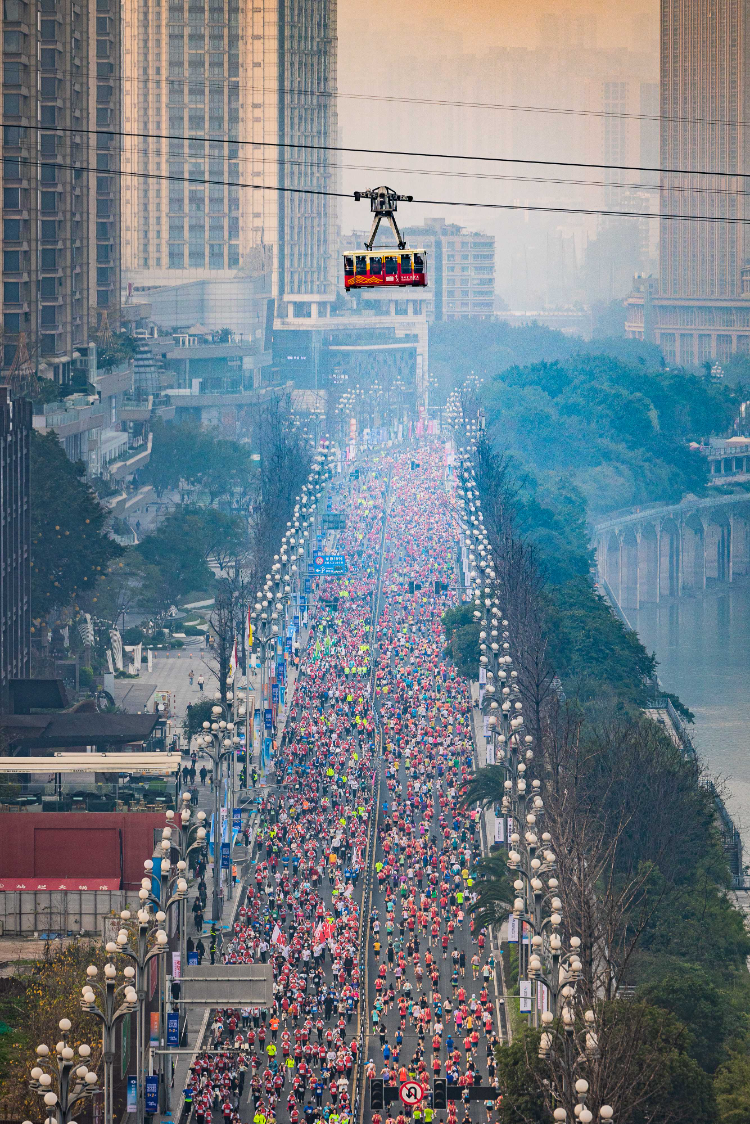 每年,重庆马拉松(以下简称“重马”)都是跑友们来到重庆的理由。大家从南滨路海棠烟雨公园出发,丈量“山水之城”的春日诗卷。重庆也热情拥抱每个跑者,让每个人以马拉松运动为媒,感受整个城市的活力和体育发展的加速度。