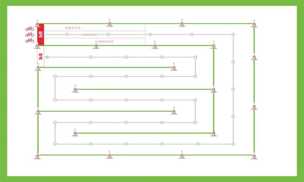 ⑦ 比赛中运动员不得故意阻挡、占道影响其他运动员比赛,出现一次则须离开赛道,原地罚停等待5s后方可继续比赛。