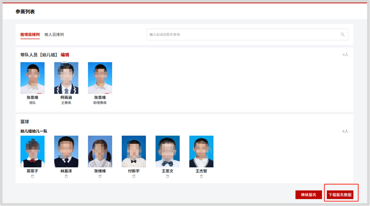 (七)在参赛列表中检查所有参赛信息无误,点击“下载报名数据”,可保存报名Excel存档。
